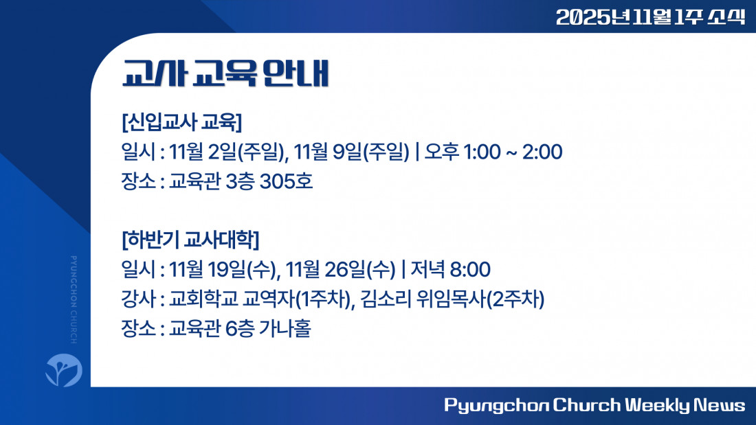 2025년 11월 1주차 평촌소식