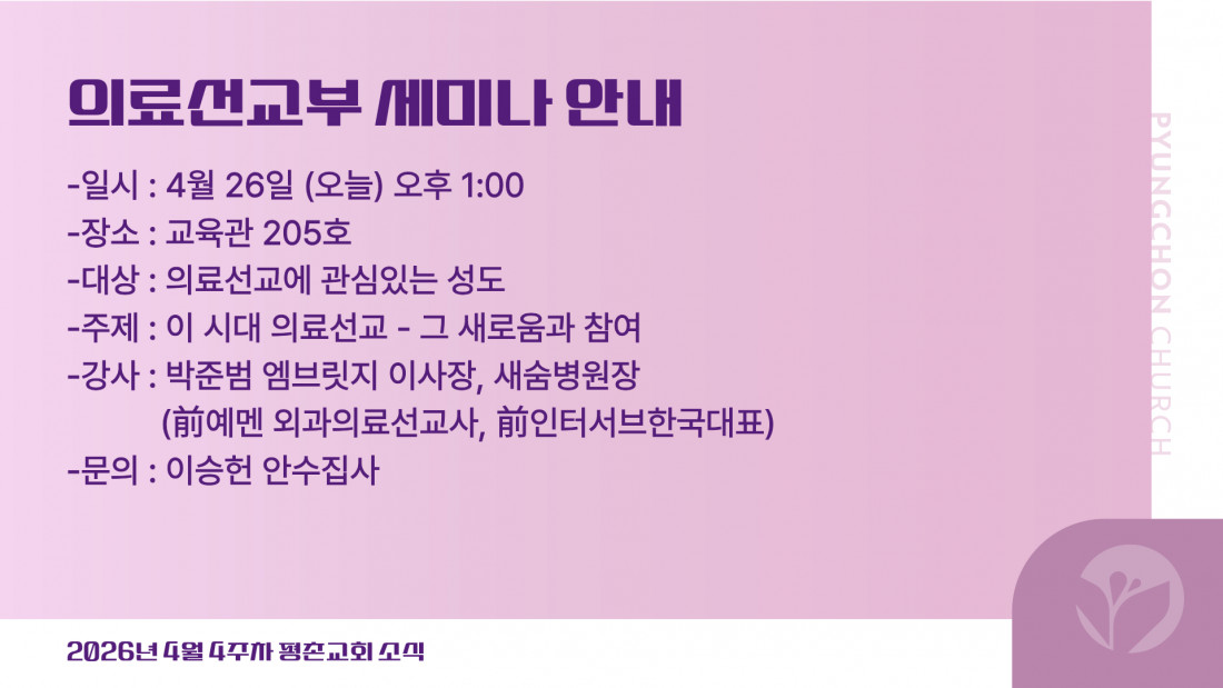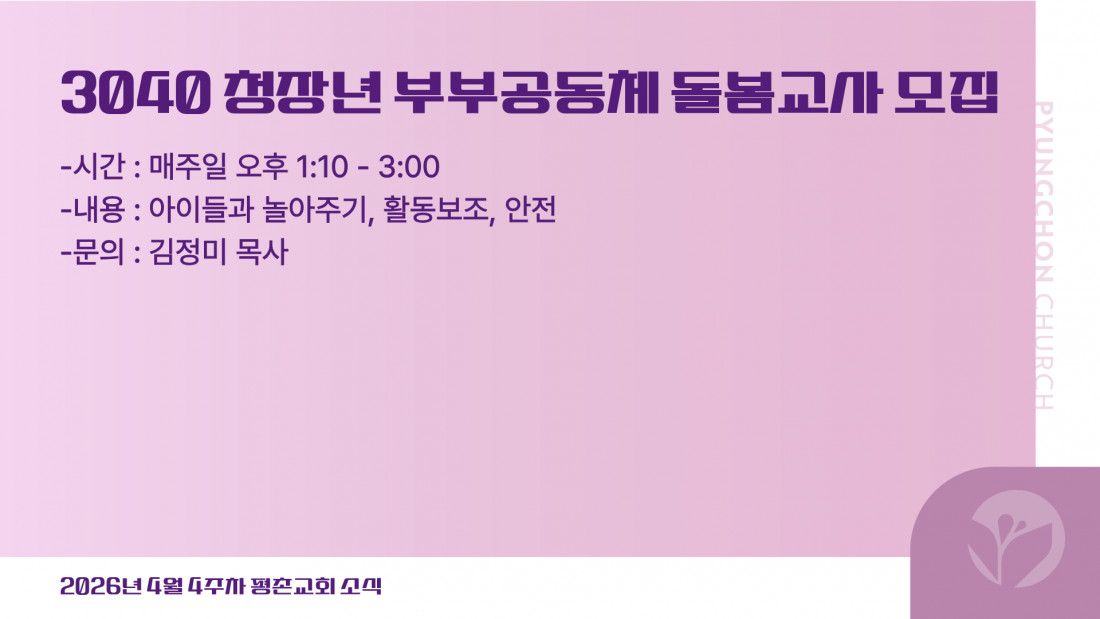 2026년 4월 4주차 평촌소식